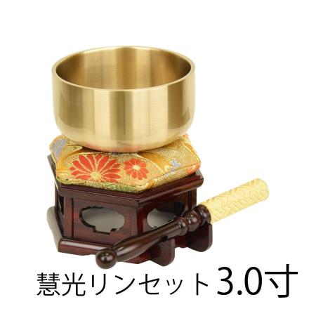 This set includes the bell itself, bell cushion, bell stand, and bell stick. [Set Contents] Bell (Sabari Keiko Fluorine-Coated 3.0 Sun) Diameter: 9.2cm x Height: 5.1cm Bell Stand (Karin Elegant with Hexagonal Stand 3.0 Sun) Width: 11cm x Height: 5cm x Depth: 9cm Bell Stick (Rosewood) Length: 13.8cm Bell Cushion (Hexagonal Small Flower Design 3.0 Sun) Diameter: 9cm x Height: 2.5cm *Dimensions and wood grain may vary slightly.